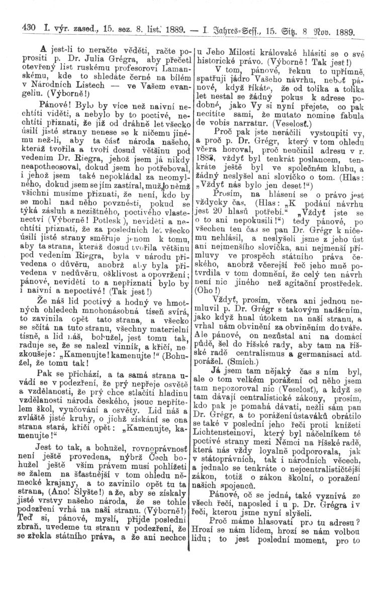 Nacházíte se: Digitální knihovna › Sněm království Českého 1889-1895 › 1. zasedání › Stenoprotokoly › 15. schůze › Pátek 8. listopadu 1889