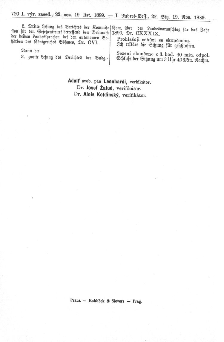 Nacházíte se: Digitální knihovna › Sněm království Českého 1889-1895 › 1. zasedání › Stenoprotokoly › 22. schůze › Úterý 19. listopadu 1889