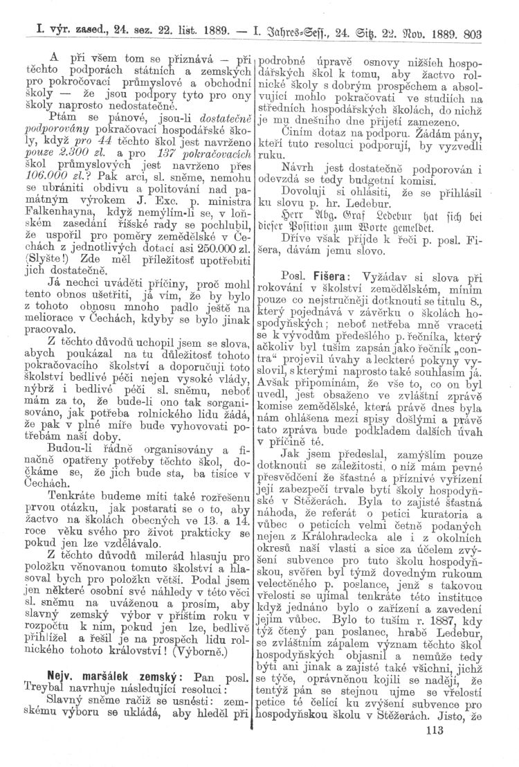 Nacházíte se: Digitální knihovna › Sněm království Českého 1889-1895 › 1. zasedání › Stenoprotokoly › 24. schůze › Pátek 22. listopadu 1889