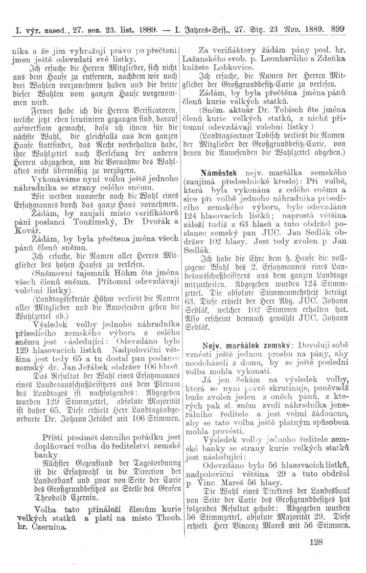 Nacházíte se: Digitální knihovna › Sněm království Českého 1889-1895 › 1. zasedání › Stenoprotokoly › 27. schůze › Sobota 23. listopadu 1889