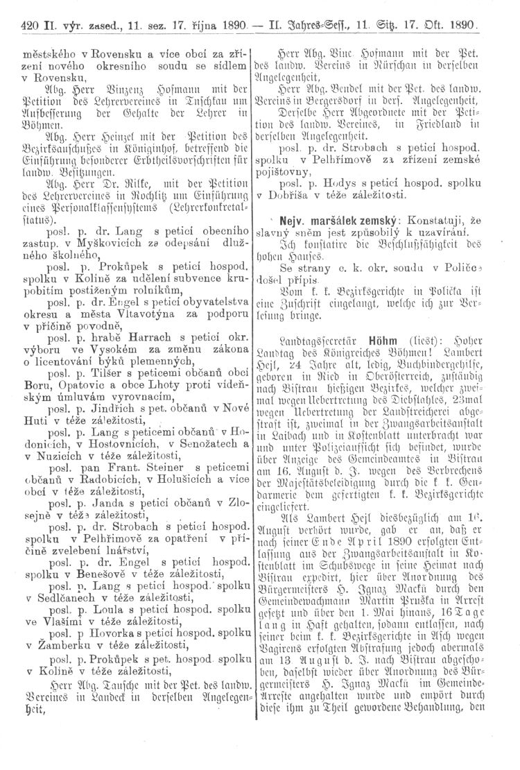 Nacházíte se: Digitální knihovna › Sněm království Českého 1889-1895 › 2. zasedání › Stenoprotokoly › 11. schůze › Pátek 17. října 1890