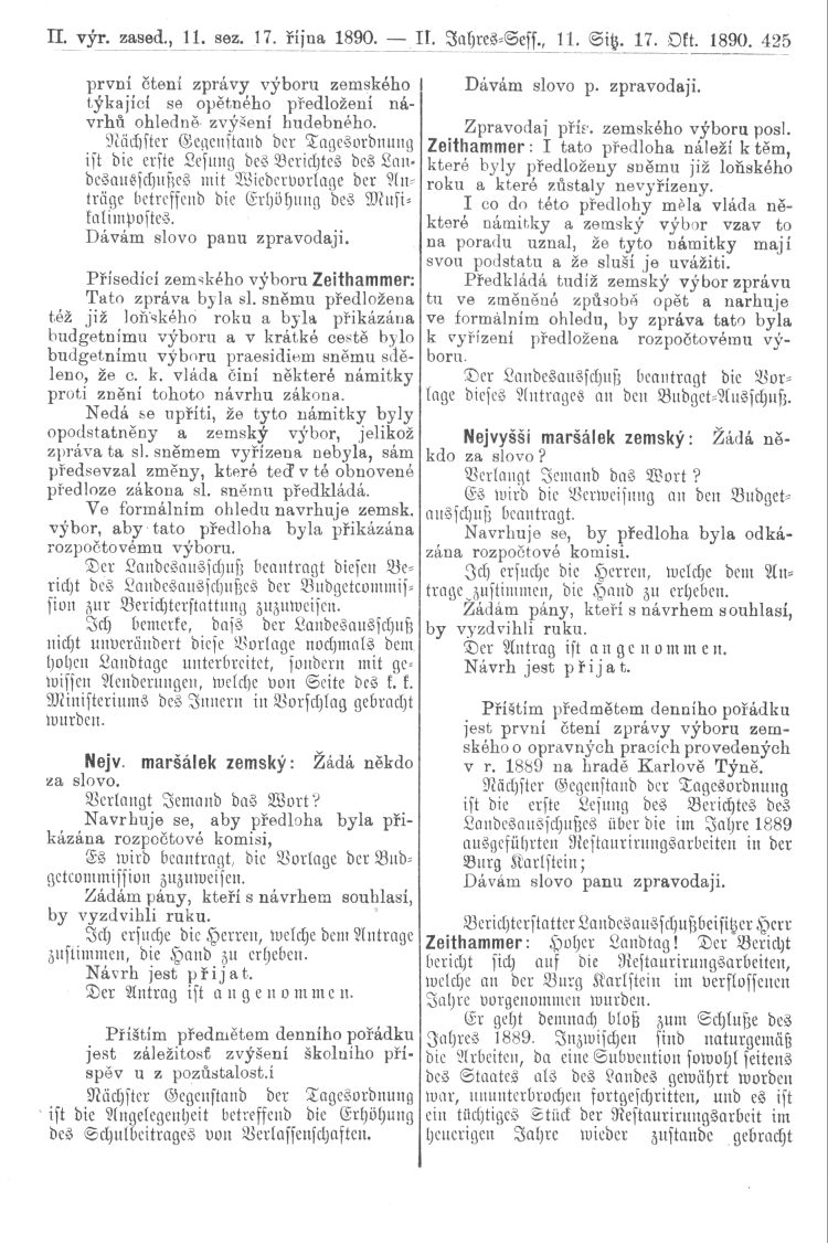Nacházíte se: Digitální knihovna › Sněm království Českého 1889-1895 › 2. zasedání › Stenoprotokoly › 11. schůze › Pátek 17. října 1890