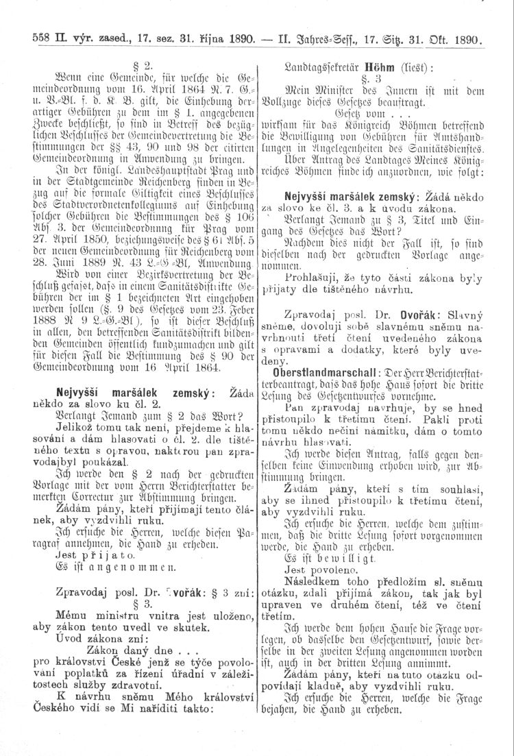 Nacházíte se: Digitální knihovna › Sněm království Českého 1889-1895 › 2. zasedání › Stenoprotokoly › 17. schůze › Pátek 31. října 1890