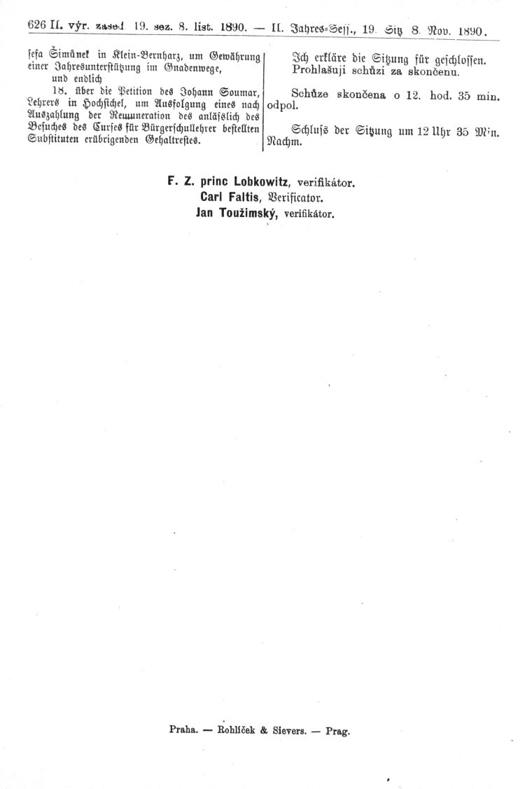 Nacházíte se: Digitální knihovna › Sněm království Českého 1889-1895 › 2. zasedání › Stenoprotokoly › 19. schůze › Sobota 8. listopadu 1890
