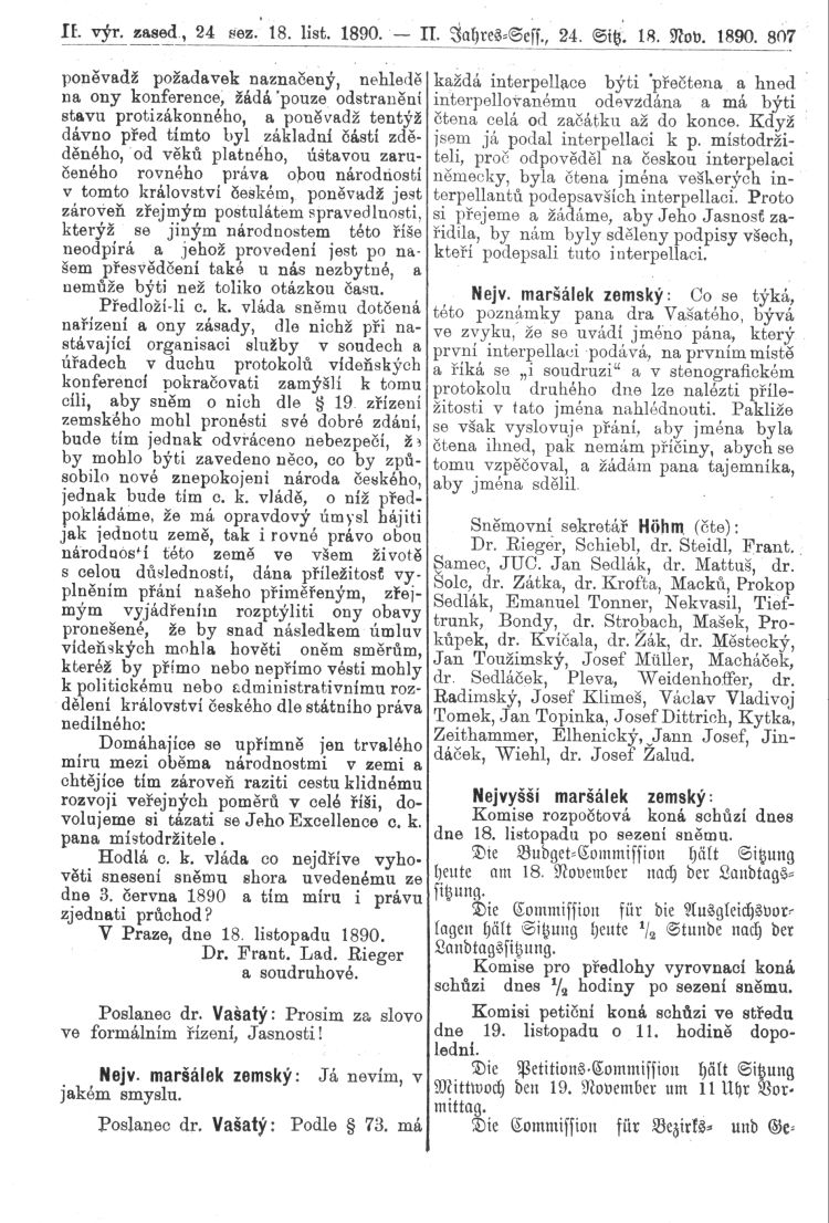 Nacházíte se: Digitální knihovna › Sněm království Českého 1889-1895 › 2. zasedání › Stenoprotokoly › 24. schůze › Úterý 18. listopadu 1890