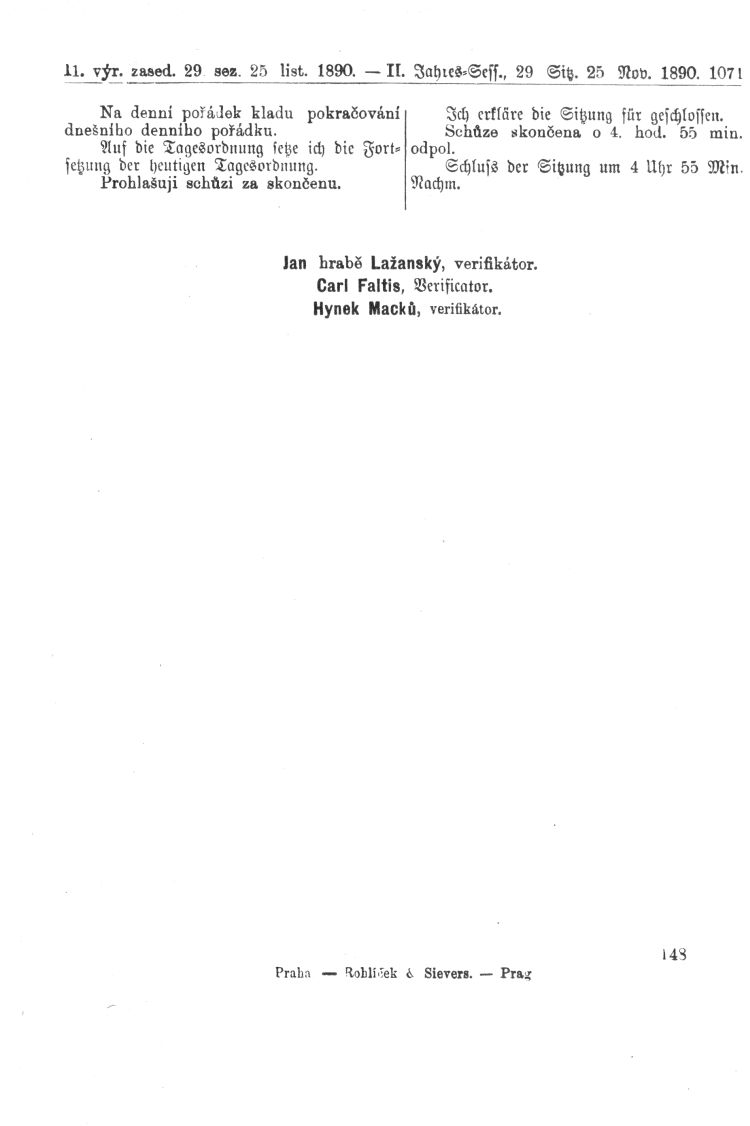 Nacházíte se: Digitální knihovna › Sněm království Českého 1889-1895 › 2. zasedání › Stenoprotokoly › 29. schůze › Úterý 25. listopadu 1890