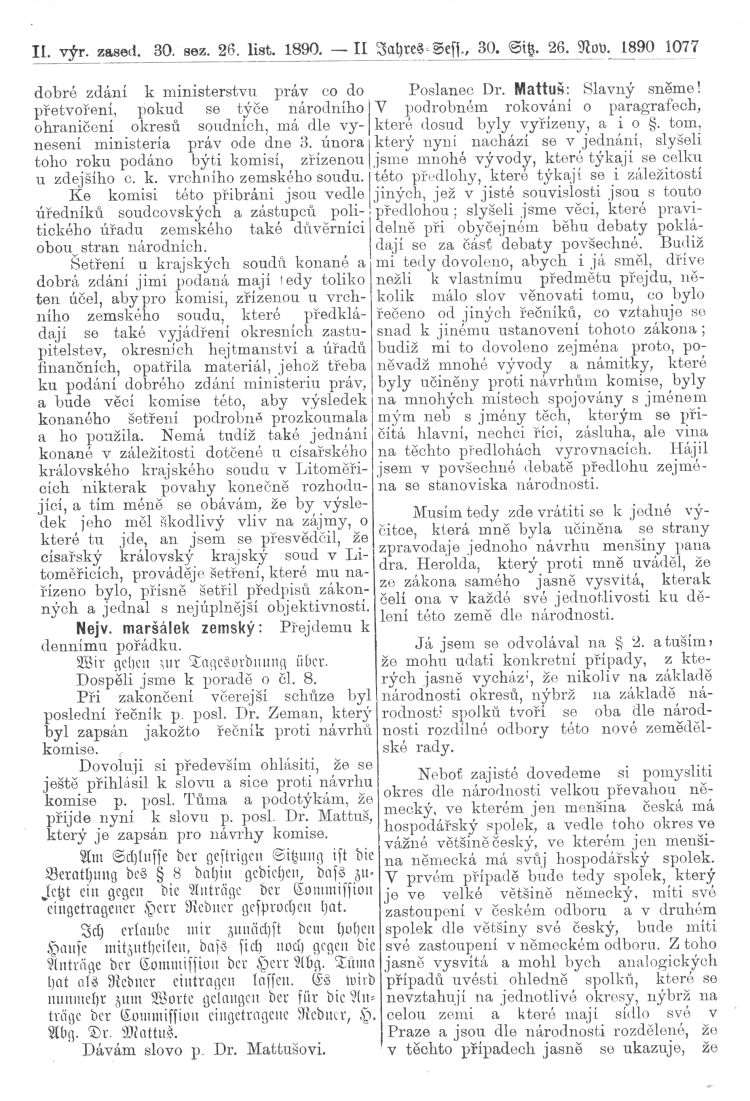 Nacházíte se: Digitální knihovna › Sněm království Českého 1889-1895 › 2. zasedání › Stenoprotokoly › 30. schůze › Středa 26. listopadu 1890
