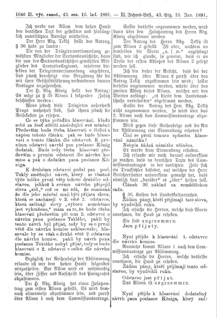 Nacházíte se: Digitální knihovna › Sněm království Českého 1889-1895 › 2. zasedání › Stenoprotokoly › 43. schůze › Pátek 16. ledna 1891