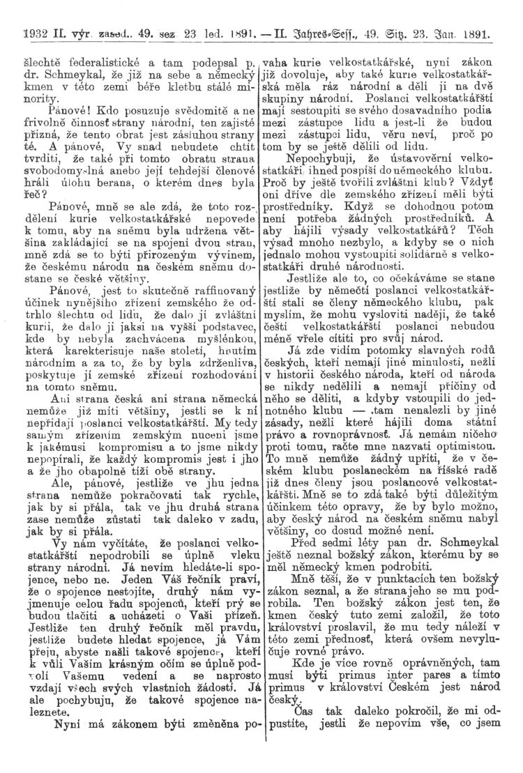 Nacházíte se: Digitální knihovna › Sněm království Českého 1889-1895 › 2. zasedání › Stenoprotokoly › 49. schůze › Pátek 23. ledna 1891