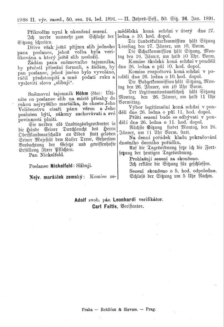 Nacházíte se: Digitální knihovna › Sněm království Českého 1889-1895 › 2. zasedání › Stenoprotokoly › 50. schůze › Sobota 24. ledna 1891
