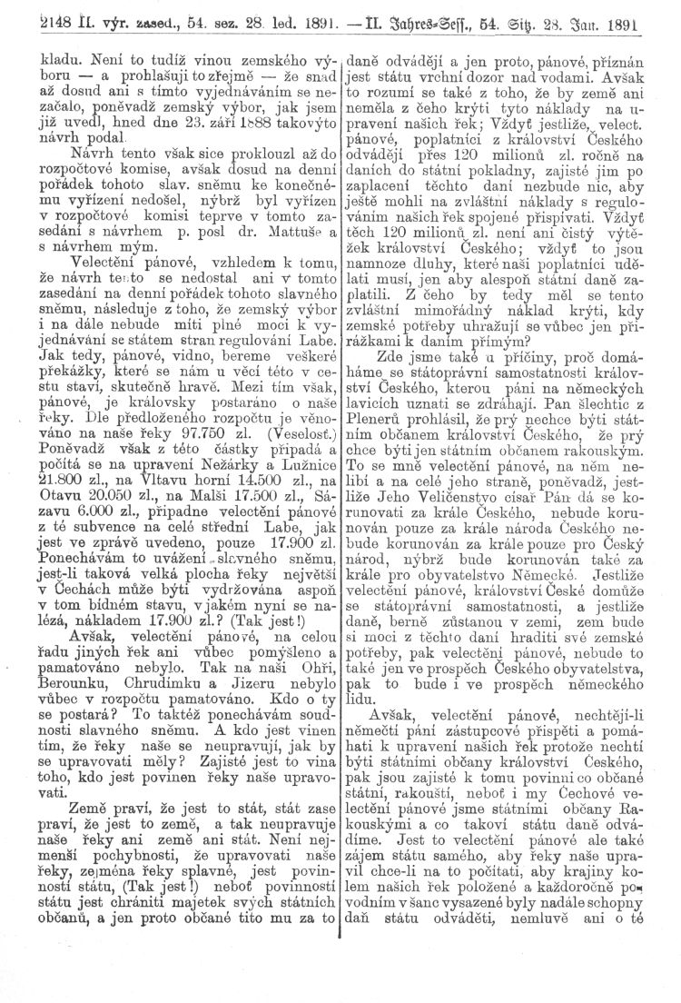 Nacházíte se: Digitální knihovna › Sněm království Českého 1889-1895 › 2. zasedání › Stenoprotokoly › 54. schůze › Středa 28. ledna 1891