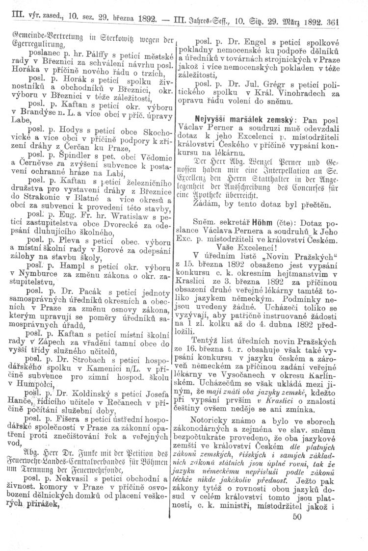 Nacházíte se: Digitální knihovna › Sněm království Českého 1889-1895 › 3. zasedání › Stenoprotokoly › 10. schůze › Úterý 29. března 1892