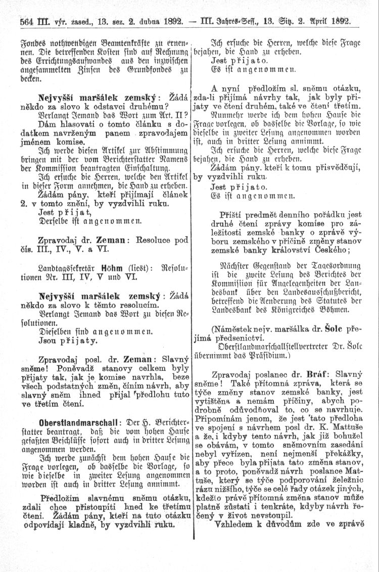 Nacházíte se: Digitální knihovna › Sněm království Českého 1889-1895 › 3. zasedání › Stenoprotokoly › 13. schůze › Sobota 2. dubna 1892