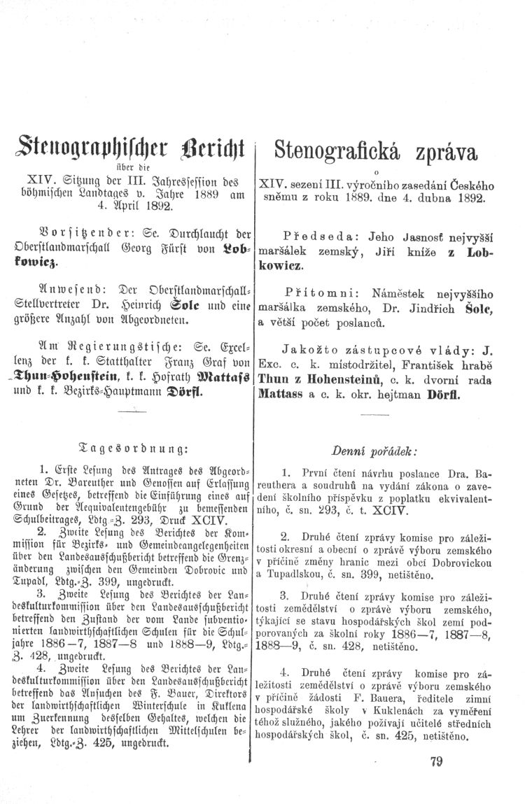 Nacházíte se: Digitální knihovna › Sněm království Českého 1889-1895 › 3. zasedání › Stenoprotokoly › 14. schůze › Pondělí 4. dubna 1892