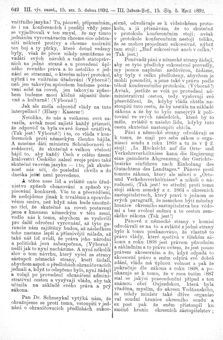 Nacházíte se: Digitální knihovna › Sněm království Českého 1889-1895 › 3. zasedání › Stenoprotokoly › 15. schůze › Úterý 5. dubna 1892