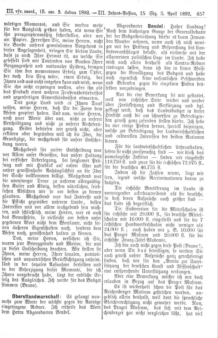 Nacházíte se: Digitální knihovna › Sněm království Českého 1889-1895 › 3. zasedání › Stenoprotokoly › 15. schůze › Úterý 5. dubna 1892