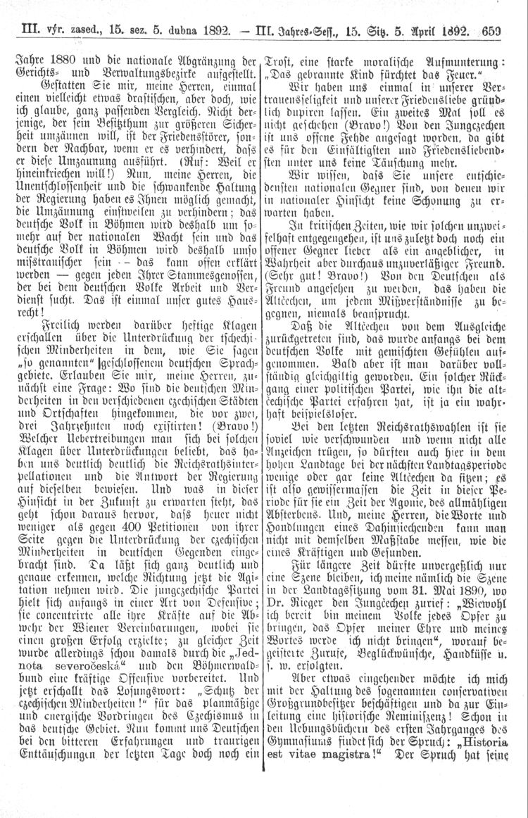 Nacházíte se: Digitální knihovna › Sněm království Českého 1889-1895 › 3. zasedání › Stenoprotokoly › 15. schůze › Úterý 5. dubna 1892