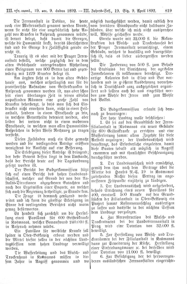 Nacházíte se: Digitální knihovna › Sněm království Českého 1889-1895 › 3. zasedání › Stenoprotokoly › 19. schůze › Sobota 9. dubna 1892