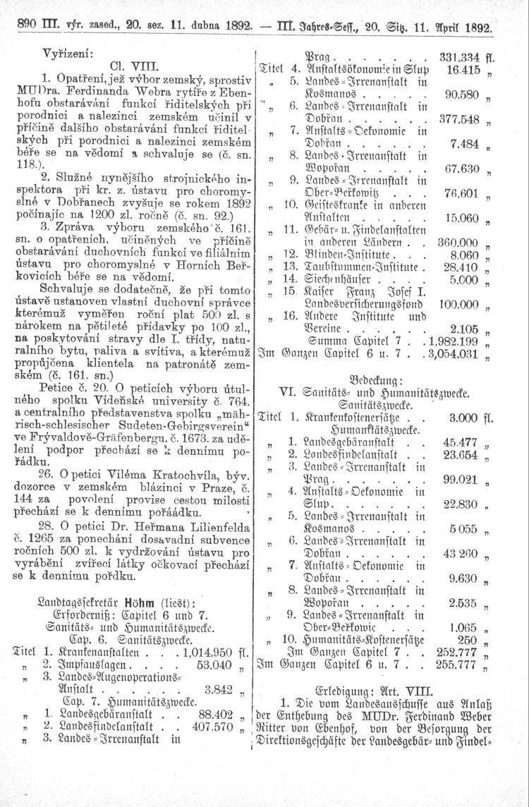 Nacházíte se: Digitální knihovna › Sněm království Českého 1889-1895 › 3. zasedání › Stenoprotokoly › 20. schůze › Pondělí 11. dubna 1892