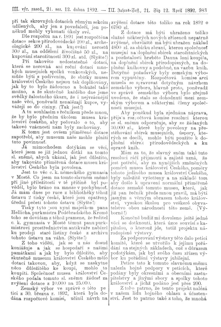 Nacházíte se: Digitální knihovna › Sněm království Českého 1889-1895 › 3. zasedání › Stenoprotokoly › 21. schůze › Úterý 12. dubna 1892