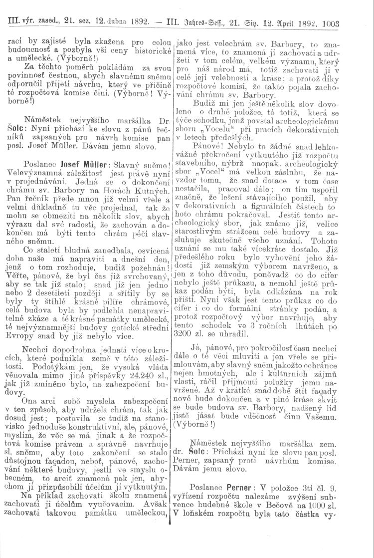 Nacházíte se: Digitální knihovna › Sněm království Českého 1889-1895 › 3. zasedání › Stenoprotokoly › 21. schůze › Úterý 12. dubna 1892