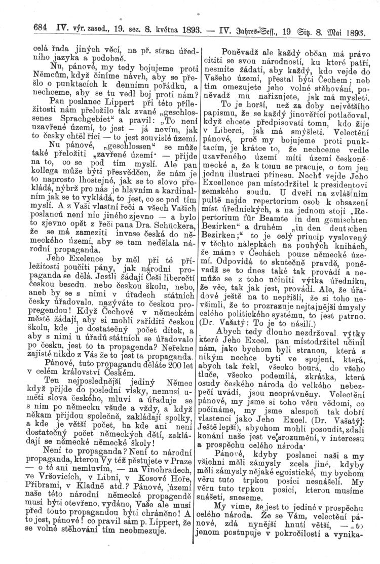 Nacházíte se: Digitální knihovna › Sněm království Českého 1889-1895 › 4. zasedání › Stenoprotokoly › 19. schůze › Pondělí 8. května 1893
