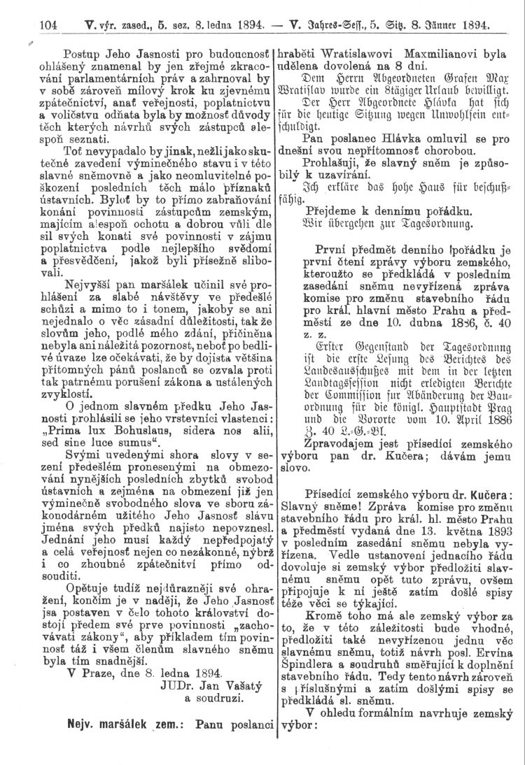 Pondělí 8. ledna 1894
