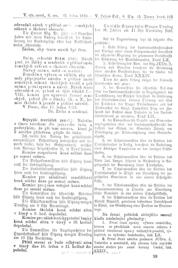 Pondělí 15. ledna 1894
