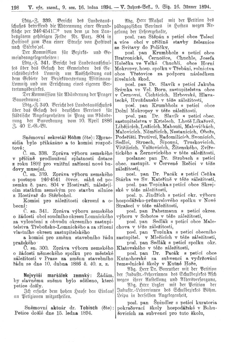 Nacházíte se: Digitální knihovna › Sněm království Českého 1889-1895 › 5. zasedání › Stenoprotokoly › 9. schůze › Úterý 16. ledna 1894