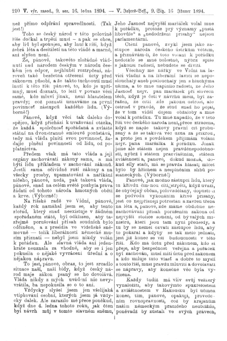Nacházíte se: Digitální knihovna › Sněm království Českého 1889-1895 › 5. zasedání › Stenoprotokoly › 9. schůze › Úterý 16. ledna 1894