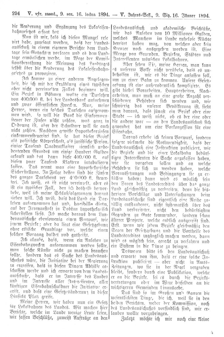 Nacházíte se: Digitální knihovna › Sněm království Českého 1889-1895 › 5. zasedání › Stenoprotokoly › 9. schůze › Úterý 16. ledna 1894