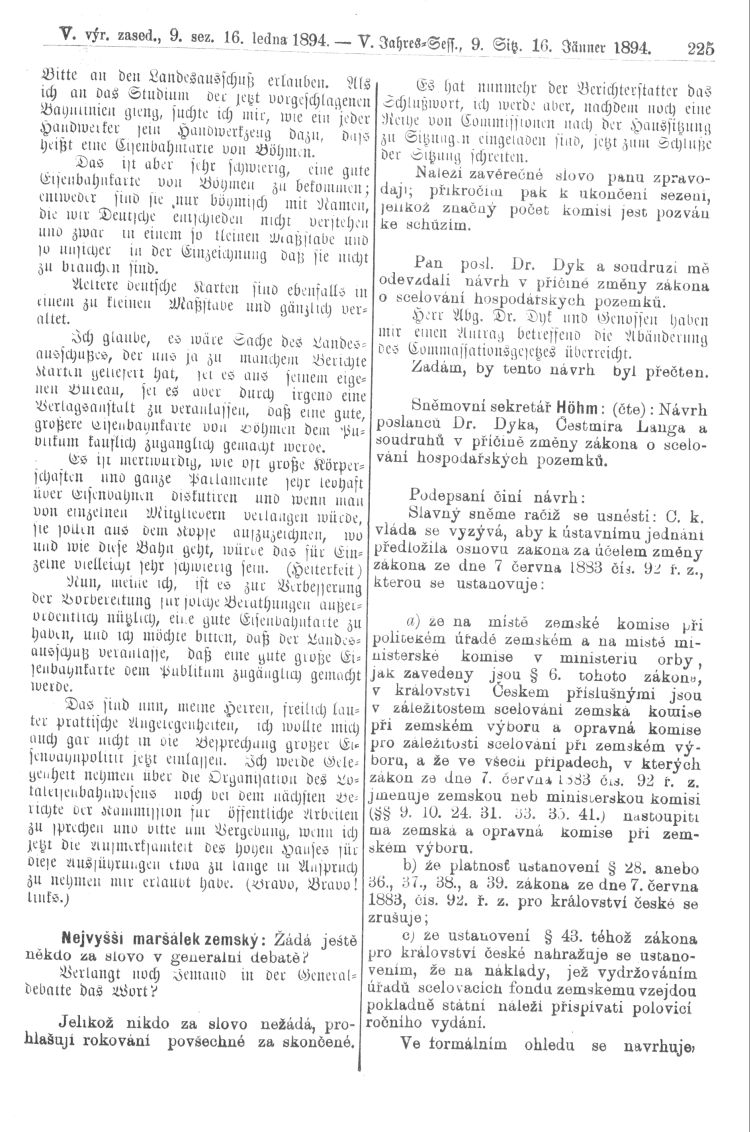 Nacházíte se: Digitální knihovna › Sněm království Českého 1889-1895 › 5. zasedání › Stenoprotokoly › 9. schůze › Úterý 16. ledna 1894