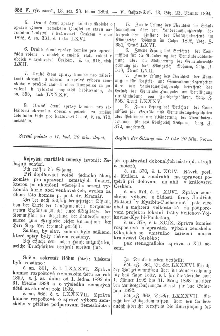 Nacházíte se: Digitální knihovna › Sněm království Českého 1889-1895 › 5. zasedání › Stenoprotokoly › 13. schůze › Úterý 23. ledna 1894