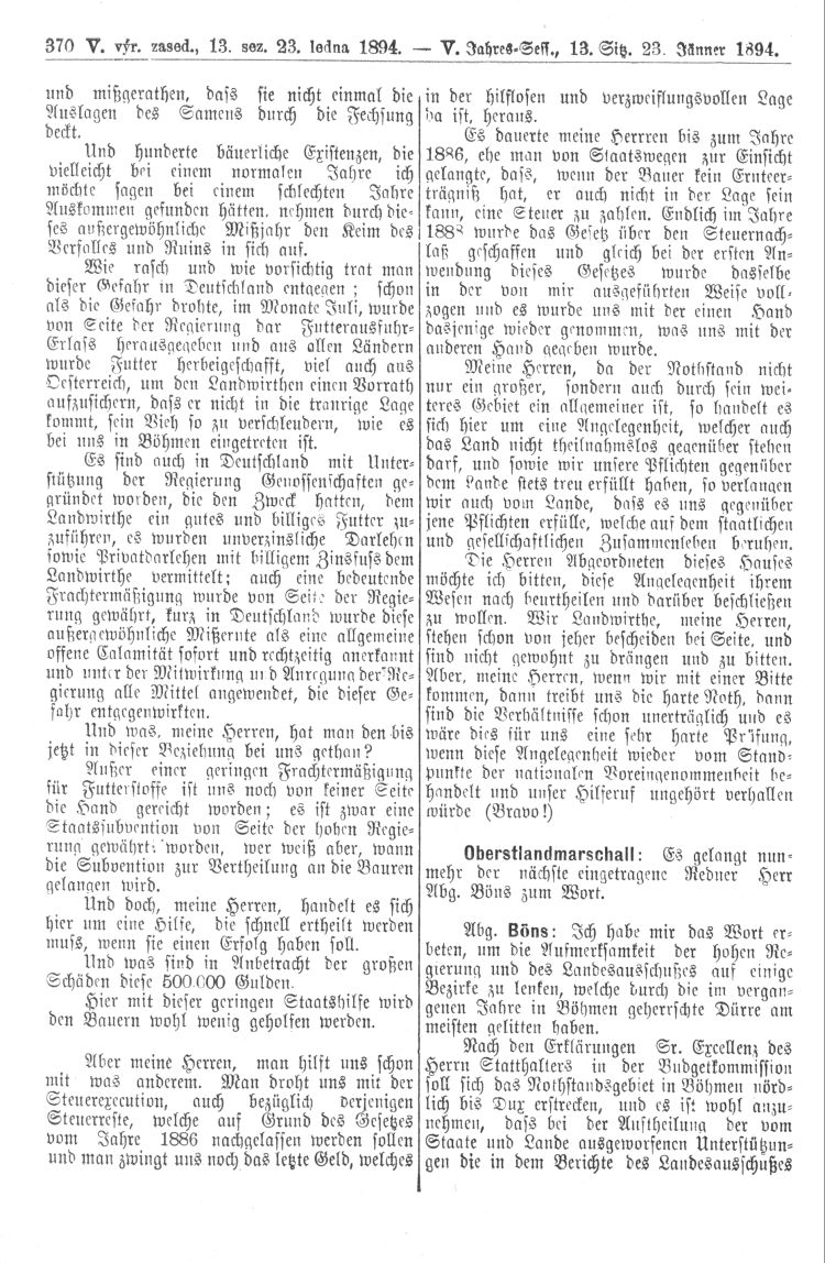 Nacházíte se: Digitální knihovna › Sněm království Českého 1889-1895 › 5. zasedání › Stenoprotokoly › 13. schůze › Úterý 23. ledna 1894