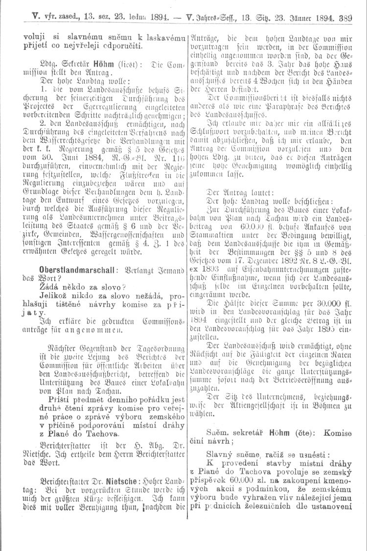 Nacházíte se: Digitální knihovna › Sněm království Českého 1889-1895 › 5. zasedání › Stenoprotokoly › 13. schůze › Úterý 23. ledna 1894