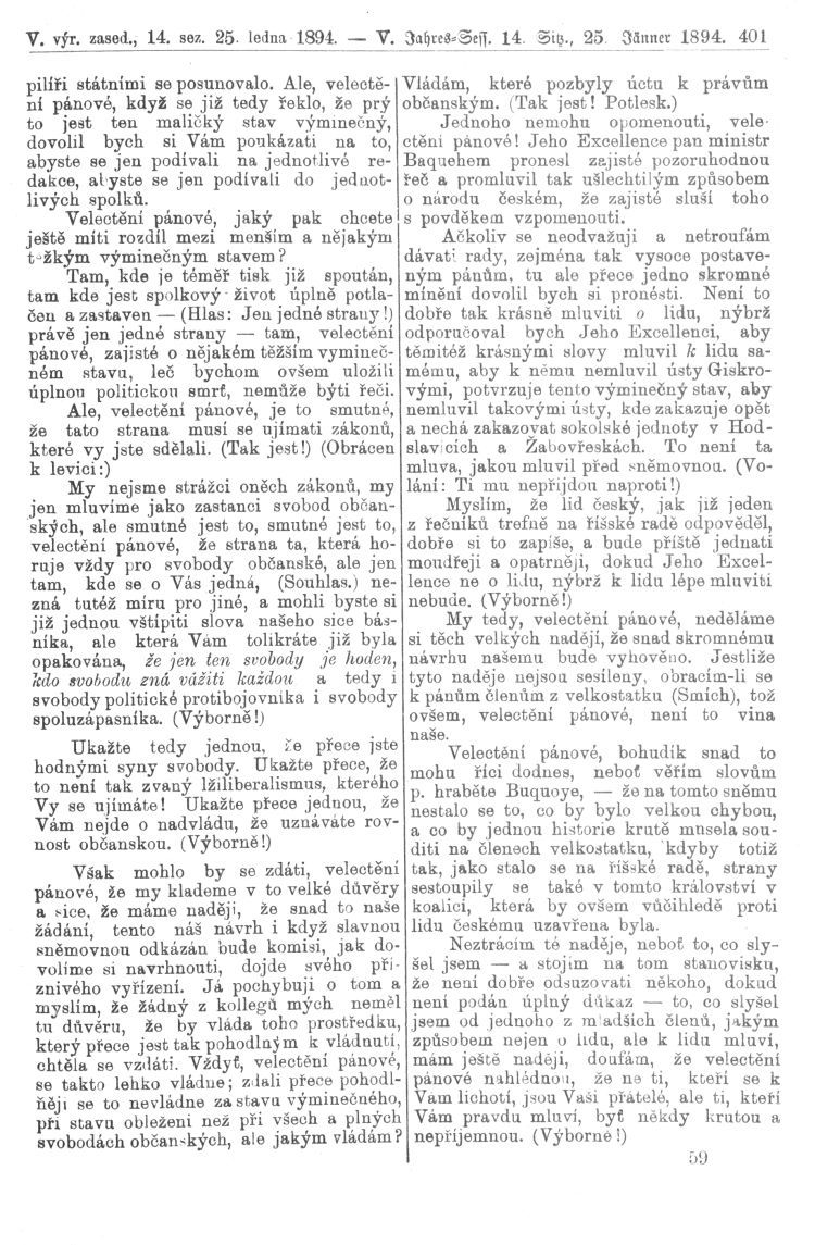 Nacházíte se: Digitální knihovna › Sněm království Českého 1889-1895 › 5. zasedání › Stenoprotokoly › 14. schůze › Čtvrtek 25. ledna 1894