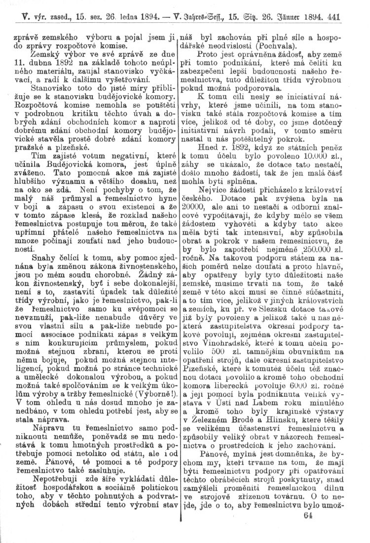 Nacházíte se: Digitální knihovna › Sněm království Českého 1889-1895 › 5. zasedání › Stenoprotokoly › 15. schůze › Pátek 26. ledna 1894