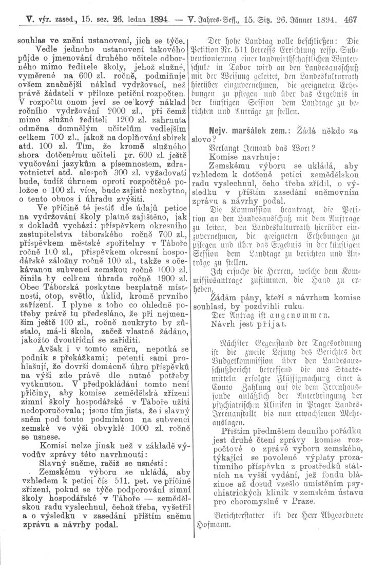 Nacházíte se: Digitální knihovna › Sněm království Českého 1889-1895 › 5. zasedání › Stenoprotokoly › 15. schůze › Pátek 26. ledna 1894