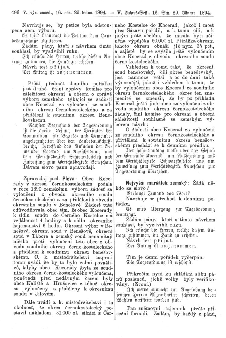 Nacházíte se: Digitální knihovna › Sněm království Českého 1889-1895 › 5. zasedání › Stenoprotokoly › 16. schůze › Pondělí 29. ledna 1894