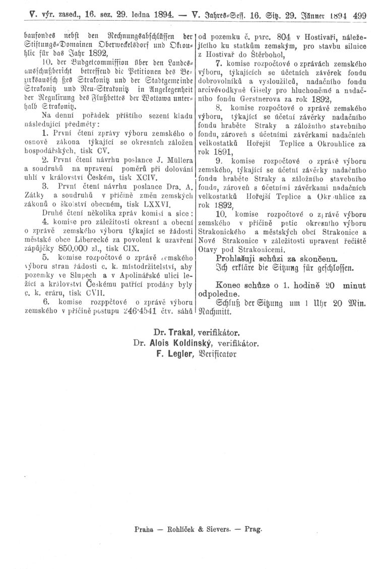 Nacházíte se: Digitální knihovna › Sněm království Českého 1889-1895 › 5. zasedání › Stenoprotokoly › 16. schůze › Pondělí 29. ledna 1894