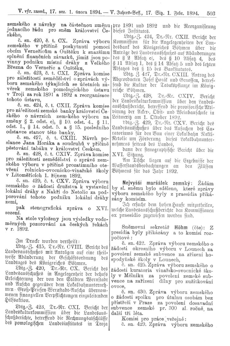 Nacházíte se: Digitální knihovna › Sněm království Českého 1889-1895 › 5. zasedání › Stenoprotokoly › 17. schůze › Čtvrtek 1. února 1894