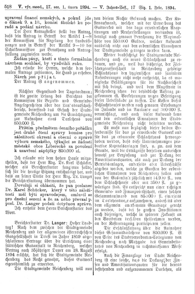 Nacházíte se: Digitální knihovna › Sněm království Českého 1889-1895 › 5. zasedání › Stenoprotokoly › 17. schůze › Čtvrtek 1. února 1894