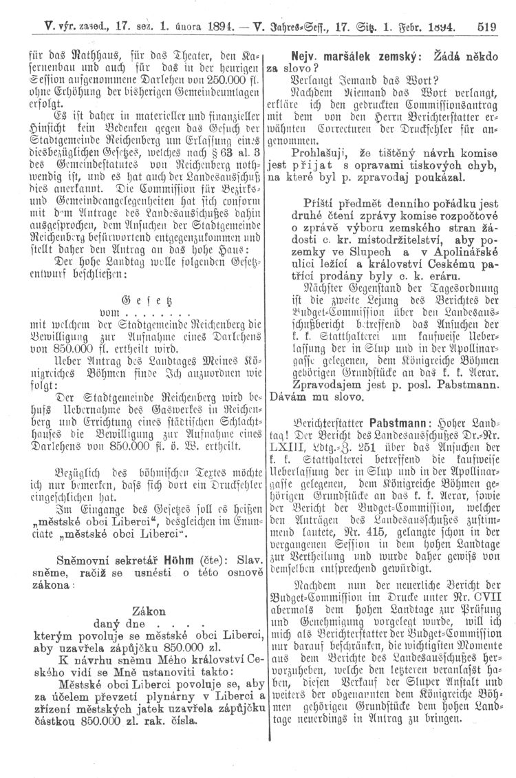 Čtvrtek 1. února 1894