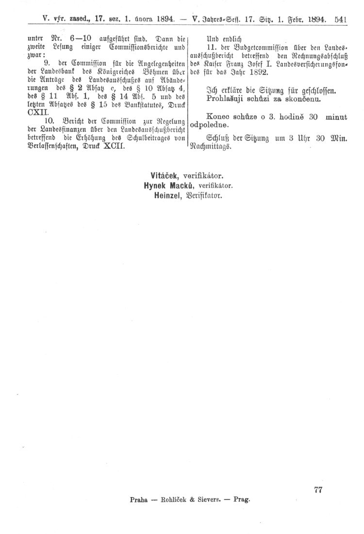 Nacházíte se: Digitální knihovna › Sněm království Českého 1889-1895 › 5. zasedání › Stenoprotokoly › 17. schůze › Čtvrtek 1. února 1894