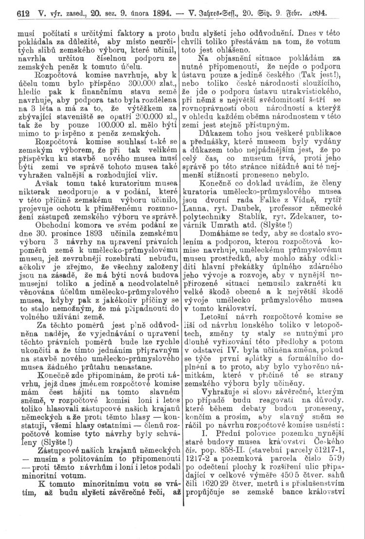 Nacházíte se: Digitální knihovna › Sněm království Českého 1889-1895 › 5. zasedání › Stenoprotokoly › 20. schůze › Pátek 9. února 1894