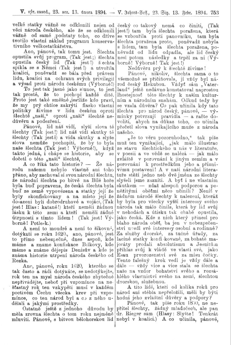 Nacházíte se: Digitální knihovna › Sněm království Českého 1889-1895 › 5. zasedání › Stenoprotokoly › 23. schůze › Úterý 13. února 1894