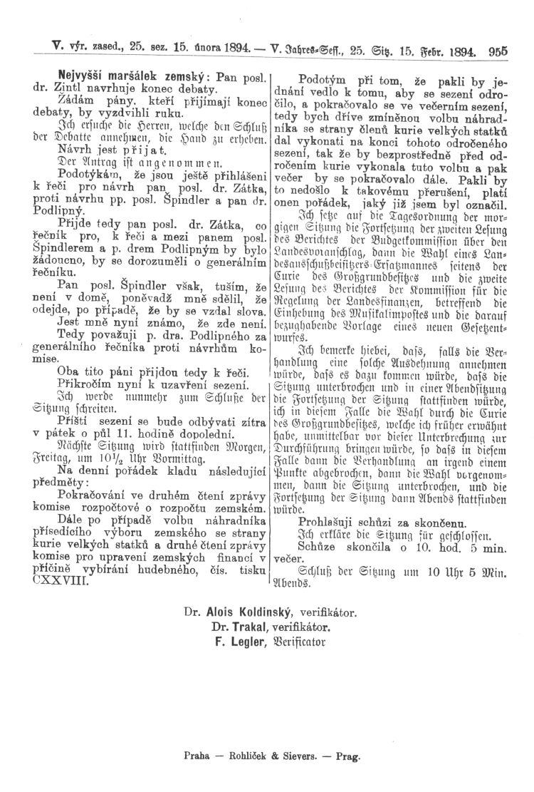 Nacházíte se: Digitální knihovna › Sněm království Českého 1889-1895 › 5. zasedání › Stenoprotokoly › 25. schůze › Čtvrtek 15. února 1894