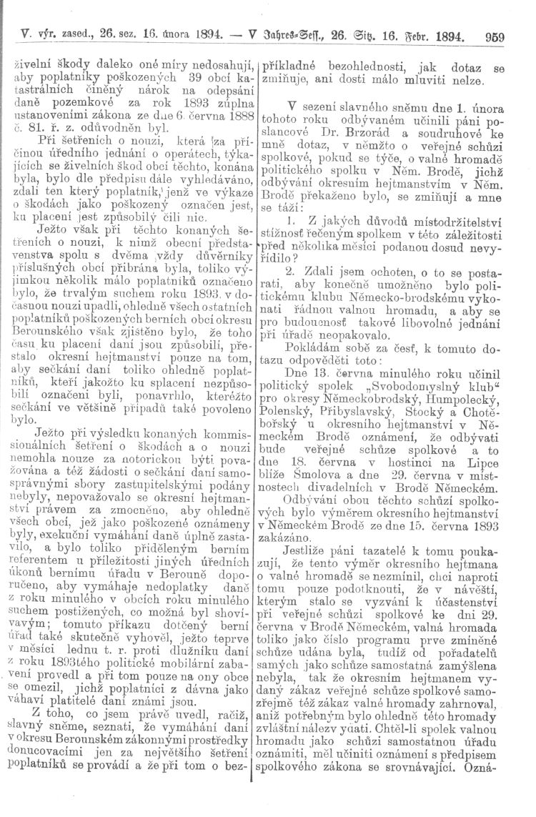 Nacházíte se: Digitální knihovna › Sněm království Českého 1889-1895 › 5. zasedání › Stenoprotokoly › 26. schůze › Pátek 16. února 1894