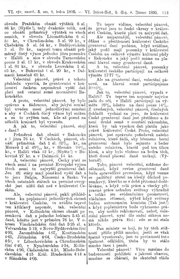 Nacházíte se: Digitální knihovna › Sněm království Českého 1889-1895 › 6. zasedání › Stenoprotokoly › 5. schůze › Úterý 8. ledna 1895