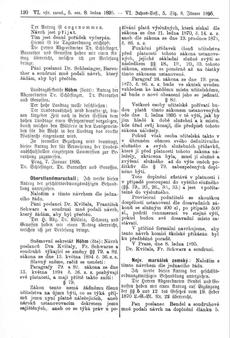 Nacházíte se: Digitální knihovna › Sněm království Českého 1889-1895 › 6. zasedání › Stenoprotokoly › 5. schůze › Úterý 8. ledna 1895